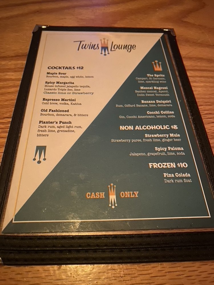 Twins Lounge, located in Brooklyn, offers a unique and vibrant atmosphere for patrons to enjoy. With spacious seating areas, a full bar on both floors, and a cute outdoor terrace, this bar is perfect for a night out with friends or a date. The retro, mid-century modern decor adds to the charm of the place, while the pool tables and photo booth provide entertainment options. The drinks menu offers a variety of classic and popular cocktails at affordable prices, making it an excellent choice for a chill night out. Despite some mixed reviews about the staff, the overall ambiance, music, and crowd make Twins Lounge a must-visit spot in the Greenpoint area. Don't forget to bring cash as it is a cash-only establishment. Enjoy the funky vibe and delicious drinks at Twins Lounge for a memorable experience in Brooklyn.
